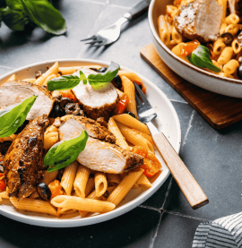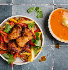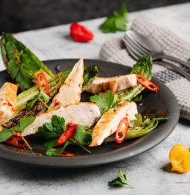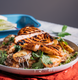 Grillattua kanaa ja hedelmäiset grillikasvikset