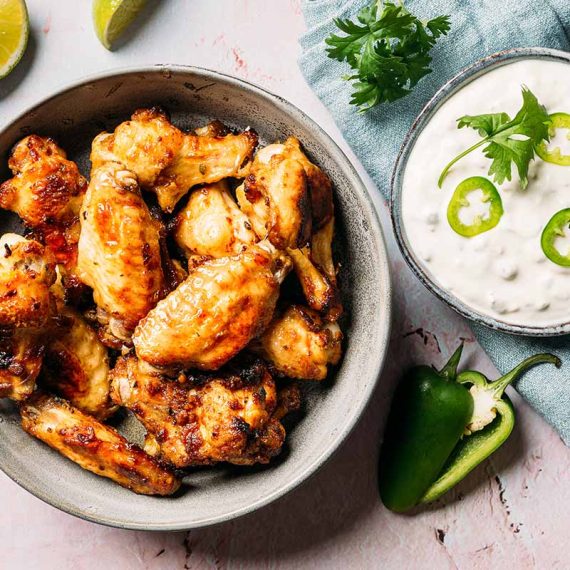 Jalapeno-Lime wingsit & minttudippi