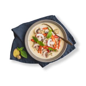 Pehmeä kookosmaidosta valmistettu kanakeitto on yksi thaimaalaisen keittiön kulmakivistä. Herkkusienten lisäksi voit käyttää keittoon muitakin kasviksia, kuten porkkanaa, kevätsipulia ja paprikaa.